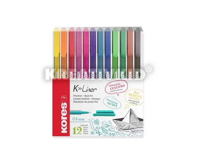 Tűfilc készlet, 0,4 mm, KORES "K-Liner", 12 különböző szín