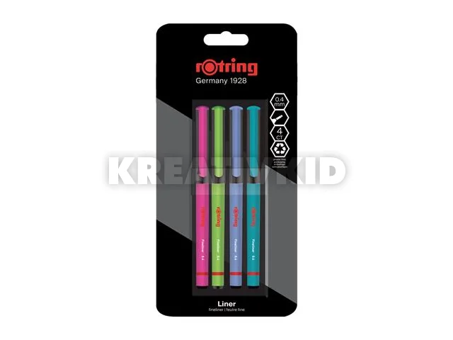 Tűfilc készlet, 0,4 mm, ROTRING "Liner", 4 különböző szín