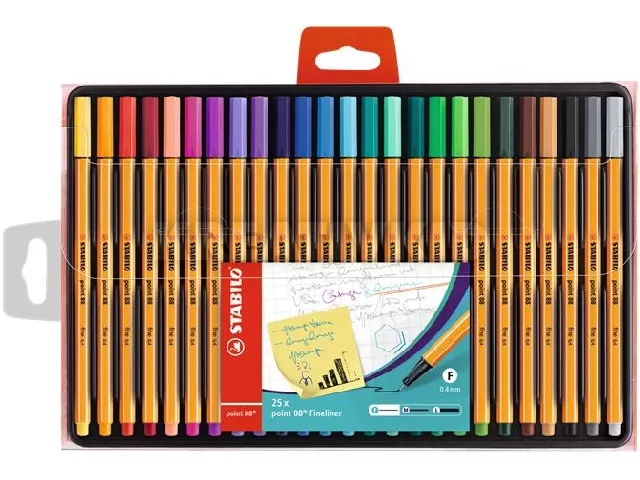 Tűfilc készlet, 0,4 mm, STABILO "Point 88", 25 különböző szín