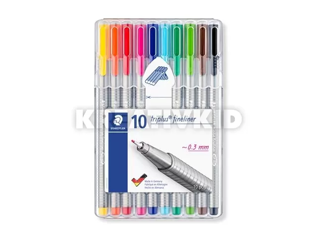 Tűfilc készlet, 0,3 mm, STAEDTLER "Triplus 334", 10 különböző szín