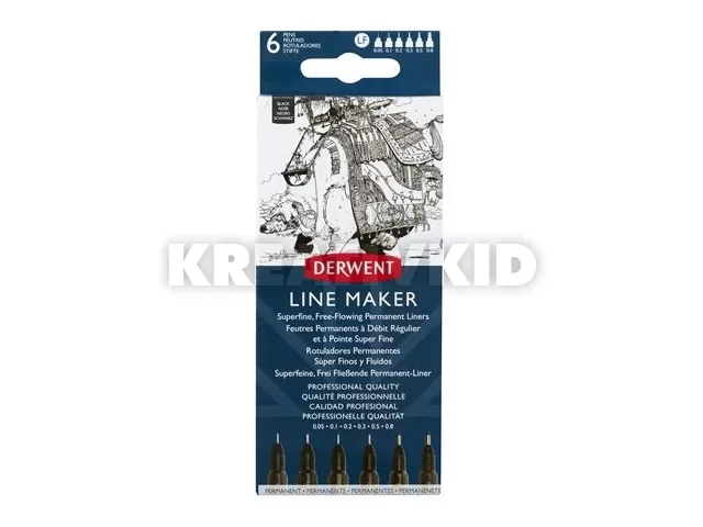 Tűfilc szett, 0,05/0,1/0,2/ 0,3/0,5/0,8 mm, DERWENT "Line Marker", fekete