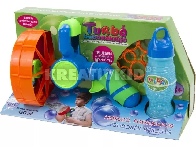 A műanyagból készült motoros szerkezetnek köszönhetően eláraszthatsz mindent kisebb-nagyobb színes szappanbuborékokkal! Nincs más dolgod, mint a tálkába önteni a szappanbuborék készítő folyadékot, majd belemártani a turbó fejet. Ezután csak nyomd meg a gombot és máris buborékok hada lep el!