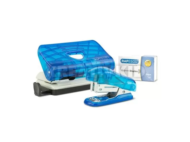 Tűzőgép és lyukasztó szett 24/6, 26/6, 12 lap, RAPESCO, átlátszó kék, tűzőkapoccsal