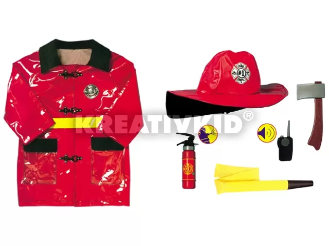 Öltözz farsangkor tűzoltónak, légy te a legmenőbb a bálon! A tűzoltó jelmez megszólalásig hasonlít a katasztrófavédők egyenruhájára! A zöld szegélyek a fényvisszaverő csíkokat imitálják, a készletben poroltót, fejszét, jelvényt és egy adóvevőt is megtalálsz. Az egyenruhára fel tudod írni a neved és a rendfokozatod, a jelmezhez egy tűzoltótömlő is tartozik. Az adóvevő hangokat ad ki magából. A játék 2 db AA ceruzaelemmel működik, a csomagolás az elemeket tartalmazza. A készlet az egyenruhát és a sapkát is magában foglalja. 3-7 éves korig!