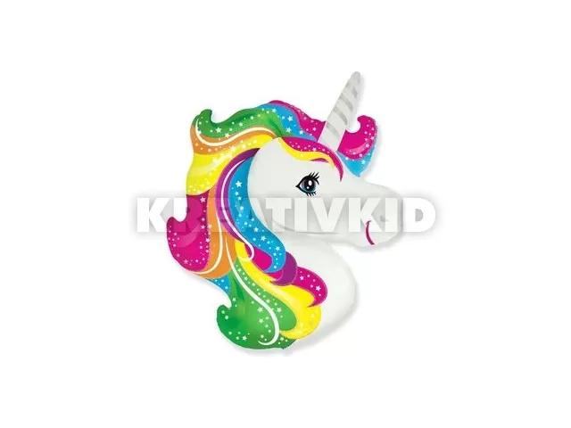 Unikornis alakú pálcára tehető fólia lufi - 37 cm