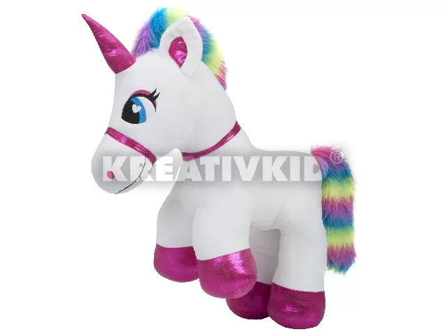 Unikornis álló plüssfigura - fehér-rózsa, 60 cm