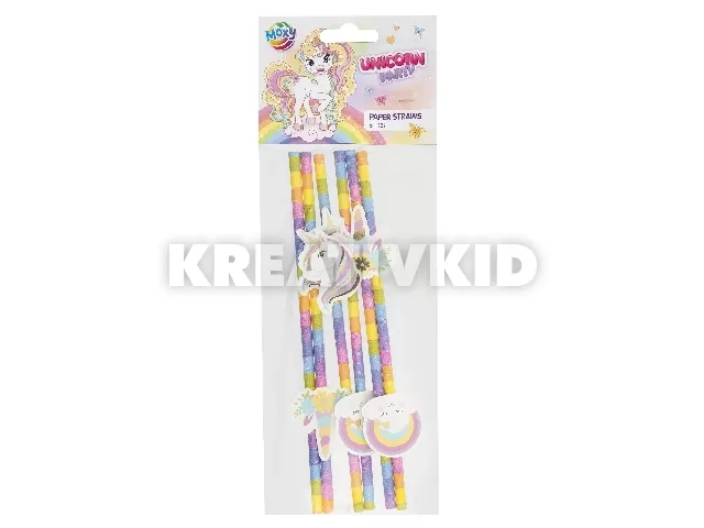 Unikornis papírszívószál, 19, 5 cm, 6 db