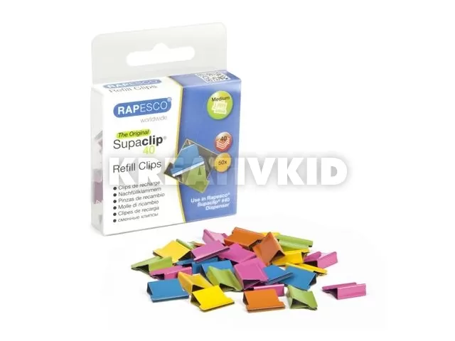 Utántöltő kapcsok, RAPESCO, "Supaclip 40" vegyes színben
