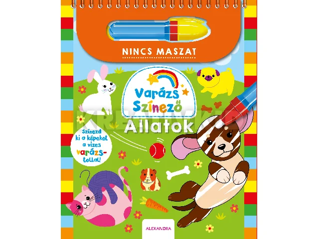 Fedezd fel a vízzel színezés örömét!Töltsd meg vízzel a speciális tollat, és máris életre keltheted a tarka állatkákat! Amint az oldalak megszáradnak, a színek varázslatos módon ismét eltűnnek.A toll újratölthető, így a képek számtalanszor újraszínezhetőek.