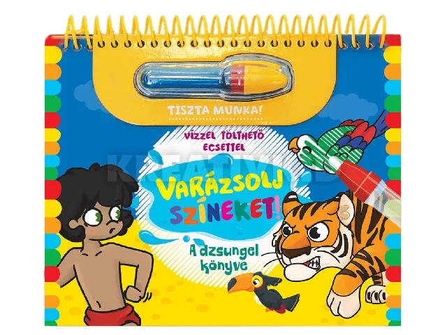 A Varázsolj színeket! A dzsungel könyve egy különleges kreatív foglalkoztató könyv, amely Maugli és barátai világába repíti a gyerekeket. A könyv lapjain kedves jelenetek és ismert szereplők várják a kicsiket, akik a mellékelt vízzel tölthető toll segítségével kelthetik életre a képeket. Ahogy a tollal végighaladnak az illusztrációkon, előbukkannak a színek, a dzsungel titokzatos világa és a klasszikus történet varázslatos részletei. A képek száradás után újra kiszínezhetők, így a gyerekek újra és újra átélhetik a varázslatos színezés élményét.