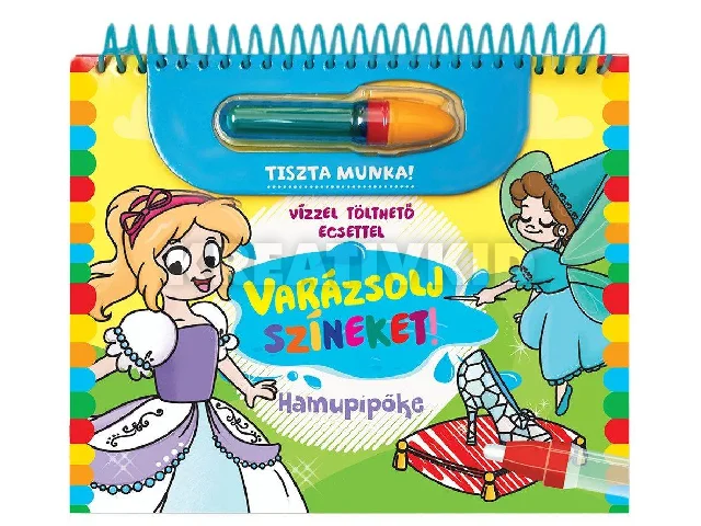 A Varázsolj színeket! Hamupipőke egy különleges kreatív foglalkoztató könyv, amely a klasszikus mese varázslatos világába repíti a gyerekeket. A könyv lapjain kedves jelenetek és jól ismert szereplők várják a kicsiket: Hamupipőke a házimunkák közben, a gonosz mostoha és a mostohatestvérek, a tündérkeresztanya varázslata, a csillogó hintó, a királyi bál, az elveszett üvegcipellő és persze a boldog befejezés. A gyerekek a mellékelt, vízzel tölthető toll segítségével kelthetik életre az illusztrációkat: ahogy a tollal végighaladnak a képeken, előbukkannak a színek, és a mese jelenetei szinte varázsütésre megtelnek élettel. A különleges megoldás ráadásul újra és újra használható, hiszen amikor az oldalak megszáradnak, a színek eltűnnek, így a gyerekek bármikor újrakezdhetik a színezést.