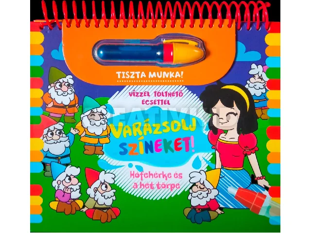 A Varázsolj színeket! Hófehérke egy varázslatos, kreatív foglalkoztatókönyv, amely a klasszikus mese világába kalauzolja a gyerekeket. A jól ismert történet kedves jelenetei Hófehérke az erdőben, a hét törpe házikója, a gonosz mostoha és a bűvös alma játékos, barátságos illusztrációk formájában jelennek meg. A könyv különlegessége, hogy a képek a mellékelt, vízzel tölthető toll segítségével kelnek életre: a színek fokozatosan bukkannak elő, mintha igazi varázslat történne.