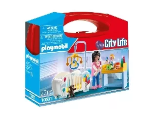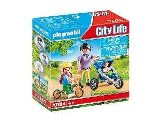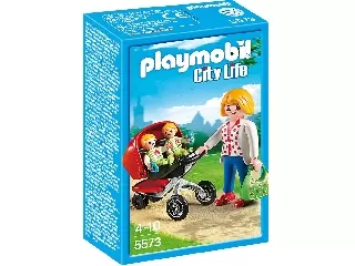 Ikerkocsi Playmobil építkezős-szerepjátszós játékszett anyuka figurával és a babakocsiban 2 bájos, egyforma ikercsecsemővel a Playmobil City Life - Vá...