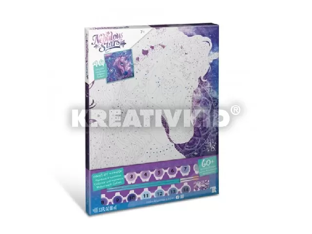 nyomtatott színes vászon,14 különböző színű akrilfesték,2 ecset, csillogó lakk,strasszok