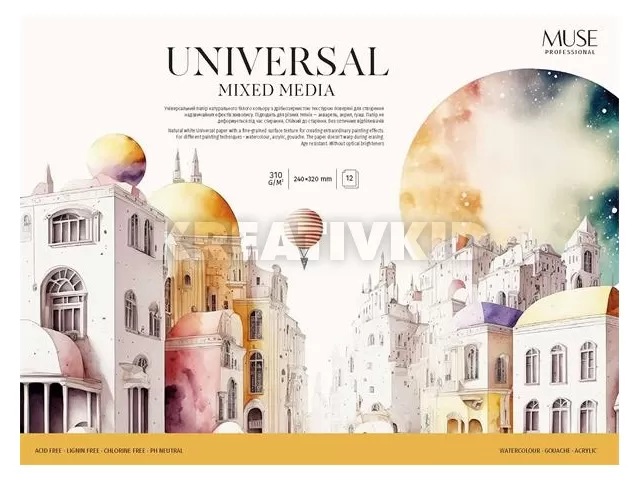 Vázlatfüzet, A4+, 310 g, 12 lap, SHKOLYARYK "Mixed Media Universal"