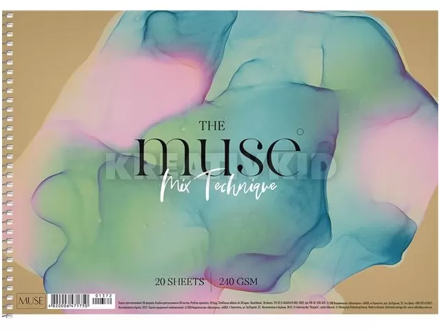 Vázlatfüzet, spirál, A4, 20 lap, 240 g, SHKOLYARYK "Mix Technique Muse