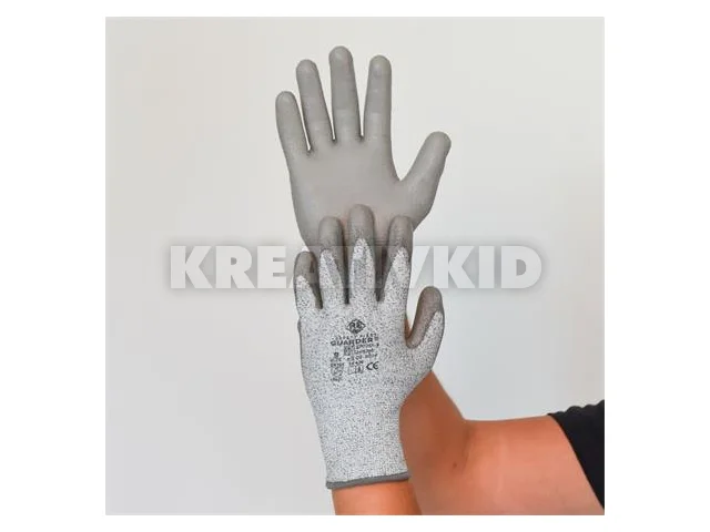 Védőkesztyű, HPPE, tenyerén PU mártott, vágásbiztos, XXL méret, szürke