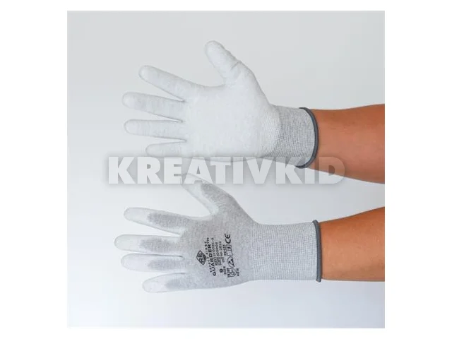 Védőkesztyű, karbonszálas, PU tenyerén mártott, M méret, fehér-szürke
