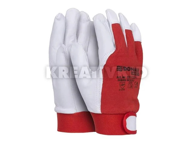 Védőkesztyű, kecskebőr, DONAU"Safety", 9/L méret, fehér-piros