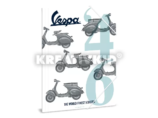 köztük a Vespa kollekció. Magával hozva az olasz életérzést, hisz ez a robogó nemzeti szimbólummá vált Olaszországban. Az összeállítás részét képezi ez a robogót ábrázoló gumis dosszié is. Iratok, füzetek tárolására, hordozására, megőrzésére alkalmas. Elsősorban iskolásoknak ajánljuk.