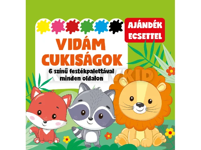Fess ki aranyos állatokat, finomságokat és vidám jeleneteket ebben a bájos foglalkoztatóban! Minden oldalon külön festékpaletta vár rád, a csomagban pedig egy ajándék ecset is segíti a kreatív alkotást. A Vidám cukiságok tökéletes választás azoknak a gyerekeknek, akik szeretik a színeket, a mókát és a cuki részleteket!
