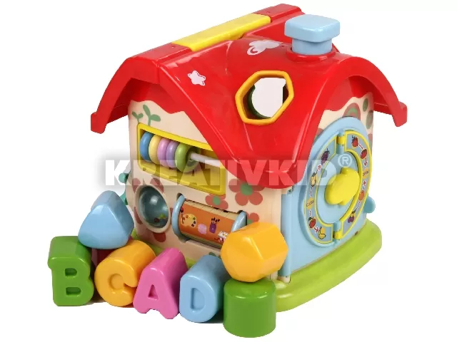 Rakd be a házikóba az építőkockákat, forma szerint válogatva! A Vidám formaválogató házikó egy műanyagból készült készségfejlesztő bébijáték. A játék lényege, hogy a házikó tetején lévő réseken keresztül a megfelelő formájú építőkockákat be kell juttatni a ház belsejébe. A házikó nem csak a megfigyelést és a színeket felismerését, de a kézügyességet is fejleszti. A Vidám formaválogató házikó méretei: 20 x 20 x 22 cm.
