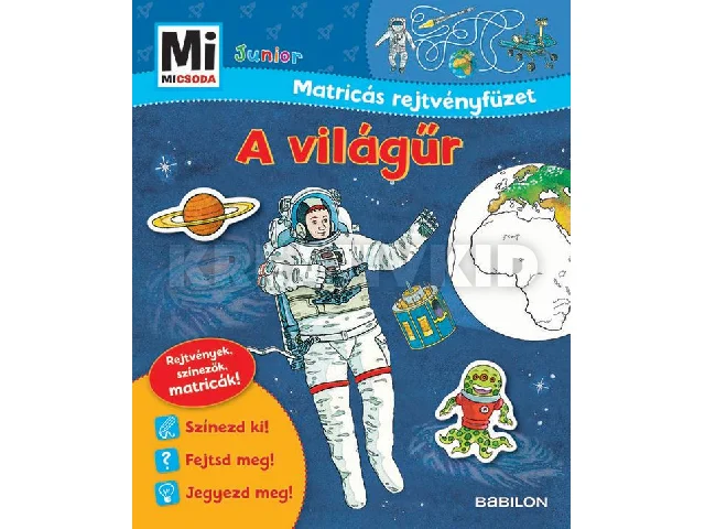 Fedezd fel a világűrt! Rajzolj földönkívülieket, és mutasd meg az űrhajósnak, hogyan jut el a Holdra!A Junior könyvsorozathoz kiváló kiegészítés: foglalkoztató füzet, amelyek nemcsak fejtörőket, kifestőket és változatos rejtvényeket tartalmaz, hanem többször átragasztható matricákat is! A feladatok megoldásával természetesen új ismereteket is elsajátíthatnak az 5-8 éves kis olvasók, s közben jól szórakoznak és a kézügyességük is fejlődik.- Kiszínezhető képek- Furfangos rejtvények és játékötletek- Többször beragasztható matricák- Vidám olvasnivaló kisiskolásoknak5 éves kortól ajánljuk.Dupla oldal matricás betéttel.
