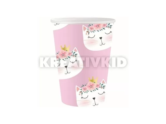Virágos cica mintájú papírpohár - 250 ml, 6 db-os