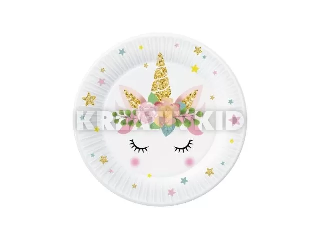 Virágos unikornis mintás papírtányér - 18 cm, 6 db