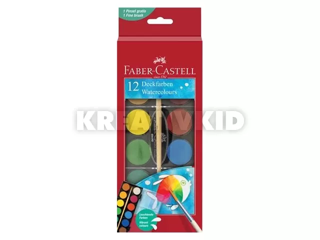 Vízfesték, 12 darabos, 30 mm, ecsettel, FABER-CASTELL