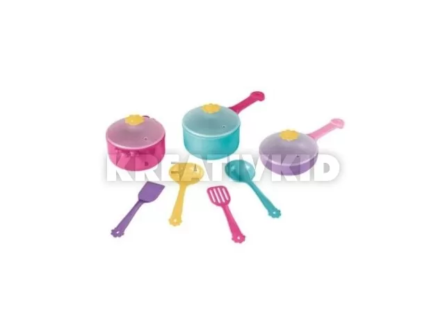 A Wader magas minőségű edénykészlete tökéletes kiegészítője lesz a gyerekkonyhának. A készlet 11 darabból áll: 1 db fedős serpenyő, 2 db fedős fazék és 4 db konyhai kellék (lapát, szűrőedény).