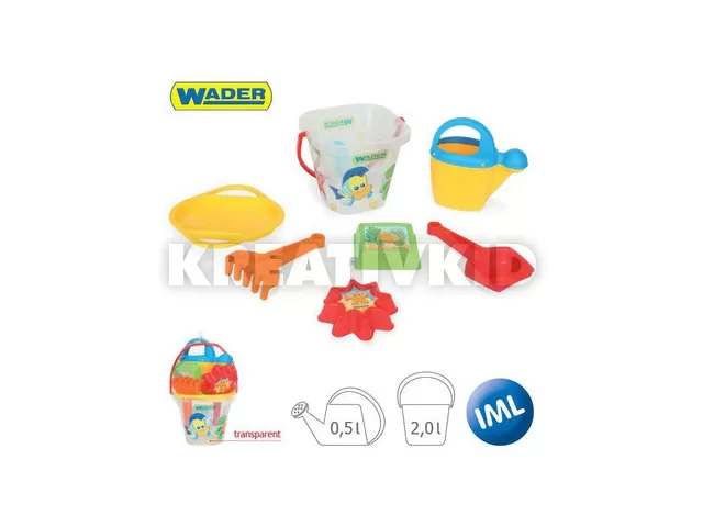Kiváló minőségű, időtálló homokozószett, mely 7 részből áll. Vidám tengeri motívumokkal dekorálva.