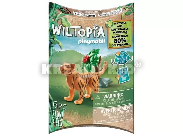 Playmobil Wiltopia Kölyök tigris játékszett. A csomag kiegészítőket, állatismereti gyűjtőkártyát, izgalmas, QR kóddal megnyitható hanganyagot és állati rejtvényeket is tartalmaz. A szett összesen 6 elemből áll. Csomagolás mérete: 8 x 12 x 3 cm