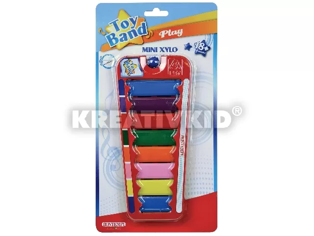 A xilofon valószínűleg mindig is az egyik legnépszerűbb gyerekhangszer volt, amin már a legkisebbek is elkezdhetik a dallamokkal való kísérletezést. Ezt a szivárvány színekben pompázó 8 hangjegyes xilofont a gyártó 18 hónapos kortól ajánlja. A szép kis ütős hangszer fémből készült egy babakézbe való kis sötétkék nyalókára emlékeztető ütővel.