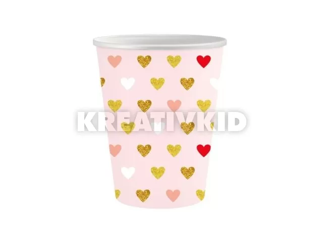 XOXO: Rózsaszín papírpohár szívekkel, 250 ml - 6 db
