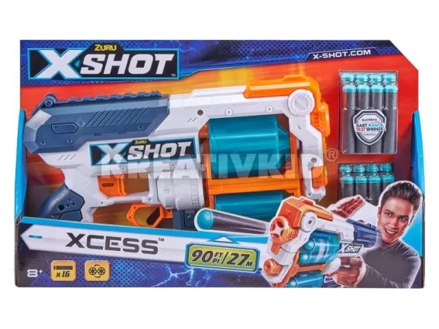 Az X-Shot XCESS duplatáras szivacslövő fegyverrel igazi csatákat vívhatsz. A játékfegyverrel gyors és pontos találatokat lehet bevinni, ráadásul egyszerre több lövést is le lehet adni, akár 27 méter messzire is! A tár könnyedén cserélhető. A szett 16 db szivacslövedéket tartalmaz.