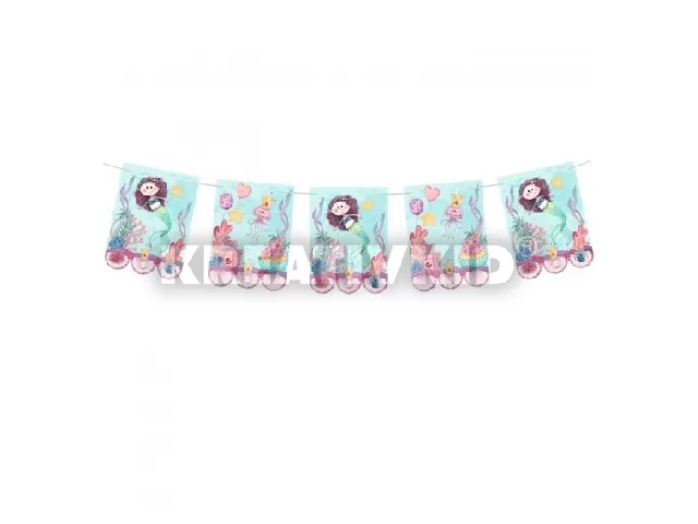 Zászlófüzér, 2,5 m, 12 db mindkét oldalán nyomott mintás zászlóval. 3 m hosszú szatén szalagon.