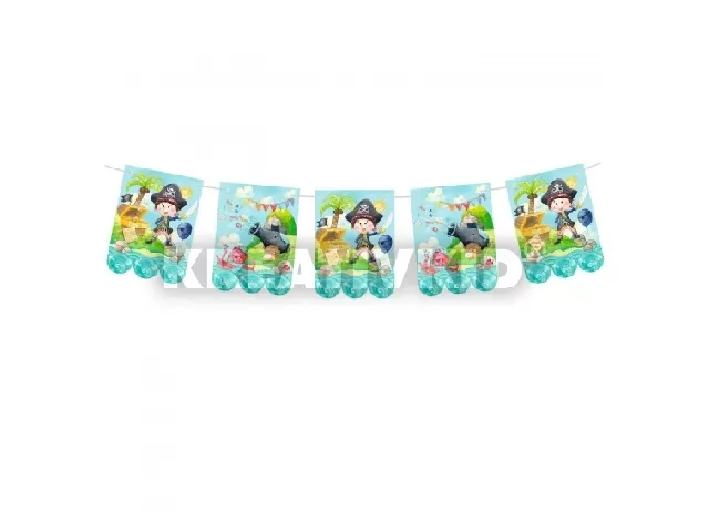 Zászlófüzér, 2,5 m, 12 db mindkét oldalán nyomott mintás zászlóval. 3 m hosszú szatén szalagon.