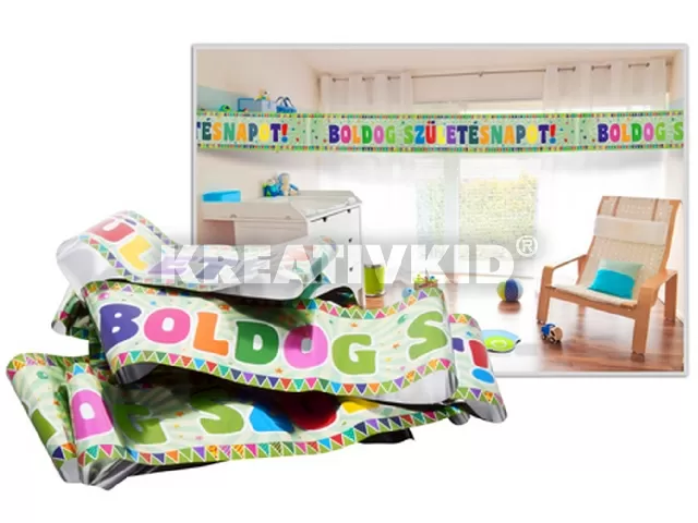 Indulhat a szülinapi buli? Ez a 3,6 m hosszú Boldog Szülinapot feliratú zászló alap kelléke egy szuper születésnapi partinak, legyen szó a család bármely tagjáról. Ez a dekoráció feldobja a hangulatot, pár perc alatt igazi parti hangulatot varázsol a lakás bármelyik helyiségébe. A fólián minden betű más színű, a háttérminta szintén vidám és színes, a színkavalkád tehát garantált, más dekorációról nem is nagyon kell gondoskodni.