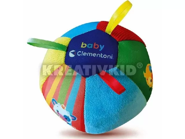A Clementoni puha, színes zenélő labda kiváló minőségű anyagokból készült. A labda kedves kis állatos képekkel van díszítve, valamint állat hangokat és sok más hanghatást és dallamot játszik. Az állatok hangja segít felismerni a különböző állatokat. Kifinomult textúrák és hanghatások serkentik a baba érzékszervi fejlődését. A különböző anyagok fejlesztik a babák a tapintását.