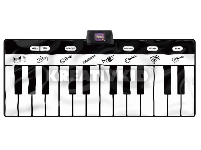 A Zongora óriás játszószőnyeg 4 darab AA ceruzaelemmel működik, a csomagolás az elemeket nem tartalmazza. Méretek: 180 x 74 cm.