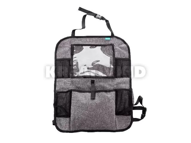 A tablet tartó zsebbel rendelkezõ praktikus ülésre szerelhetõ rendezõ ideális társ, ha gyerekkel utazik. A tablet tartó zseb óvja a tablet érintõképernyõjét, és a segítségével gyorsan hozzáférhetõ a készülék. Mivel a zseb átlátszó, jól látható, hogy mit tartalmaz. Ezenkívül a rendezõ két italtartót tartalmaz. Univerzális jellegének köszönhetõen az ülés gyakorlatilag minden jármûvel kompatibilis. A rögzítését állítható hosszúságú praktikus klipek könnyítik meg, amelyeknek köszönhetõen szabályozni az elhelyezkedése. Ezenkívül az út során nélkülözhetetlen apróságok tárolására egy további zsebet, valamint két mobilt- és kulcstartó hálós zsebet is tartalmaz.