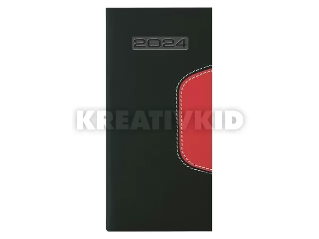 Zsebnaptár, fekvő elrendezésű, DAYLINER, "Memphis", fekete-piros
