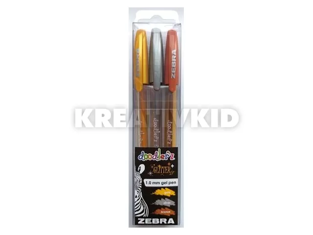 Zseléstoll készlet, 0,33 mm, kupakos, ZEBRA "Doodler`z Glitter", 3 különböző szín